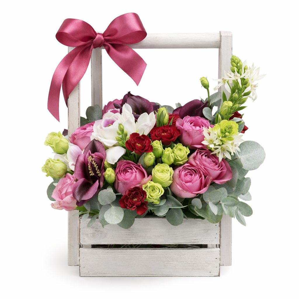 Композиция в ящике «Цветочное чудо» — восхитительная композиция цветов, в которой каждый компонент органично взаимодействует с остальными. Яркие оттенки и текстуры создают эффектный визуальный ансамбль, который вызывает восхищение и притягивает взгляды.