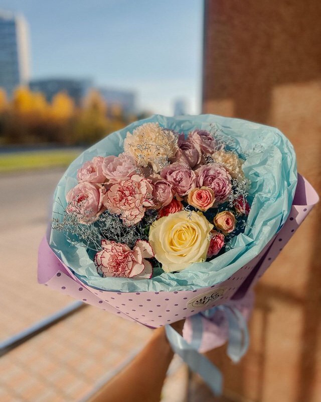 Мы используем только свежие цветы, которые поступают в магазин напрямую с плантаций и оранжерей. Каждый букет собирается вручную опытными флористами.